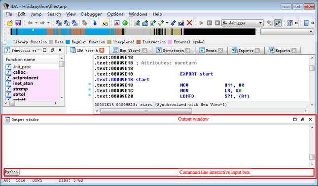 Adding the Wait() function to the ida.idc file avoids having to write this function to the IDAPython script every time, which is because IDA will first execute the above mentioned ida.idc script before executing the specified IDApython script after it is started. The output of the above code is as below: